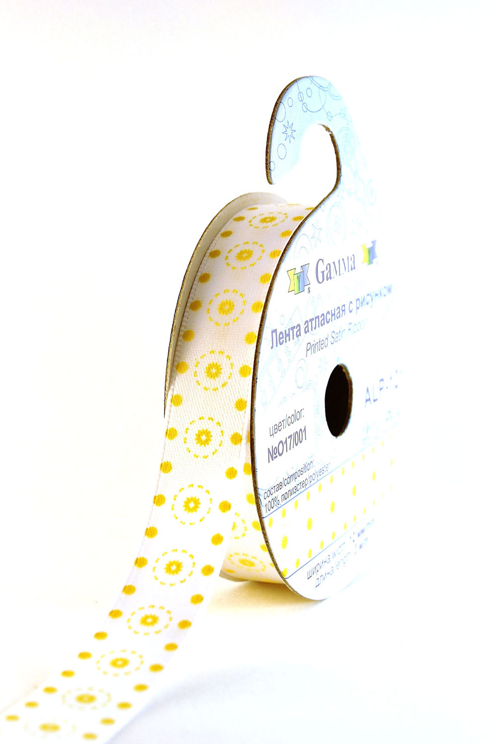 Лента атласная 12 мм ( 1/2 ") с рисунком "Gamma" ФАСОВКА 3 м A1 001/009 белый/св.желтый