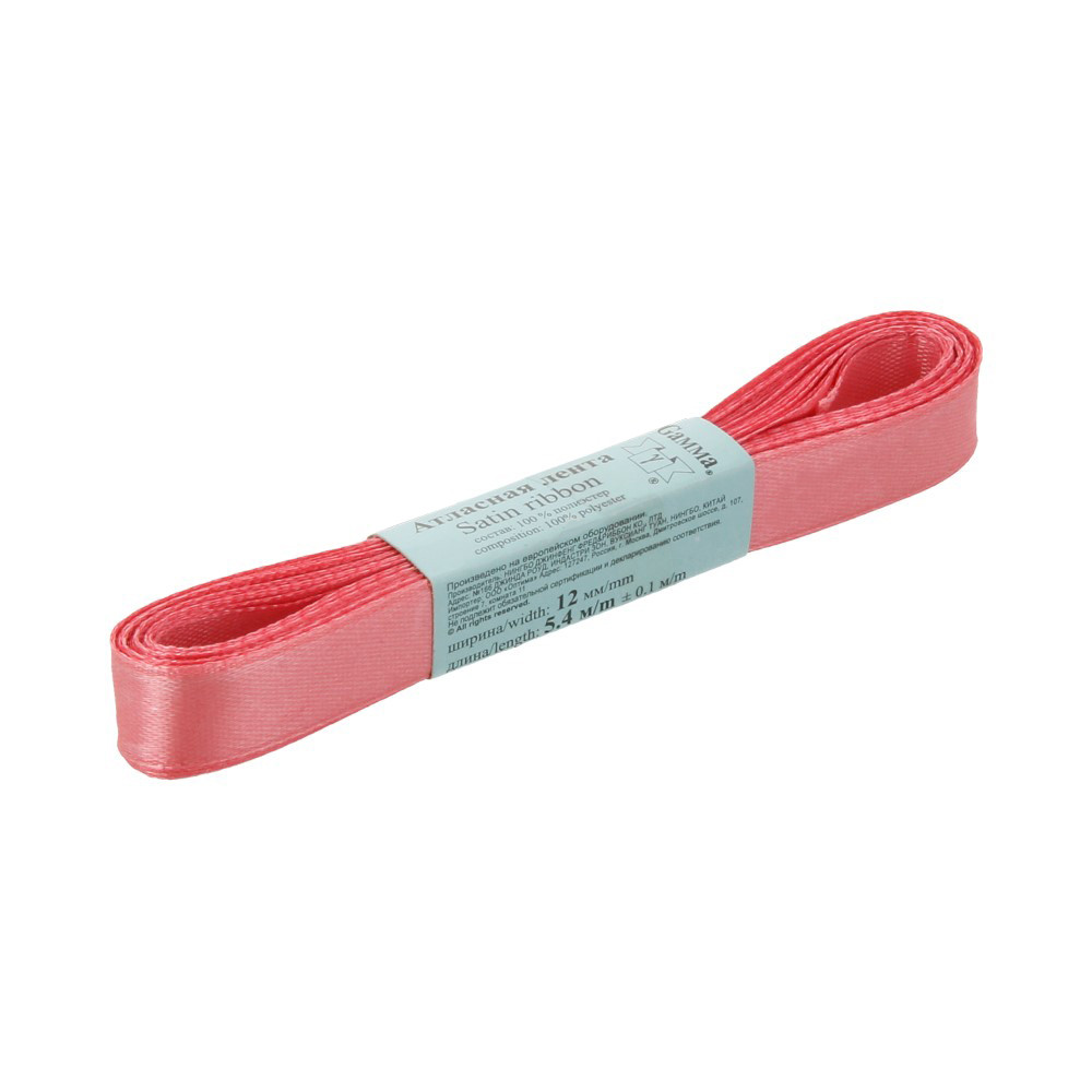 Лента атласная 12 мм ( 1/2 ") "Gamma" ФАСОВКА 5.4 м №069 т.розовый